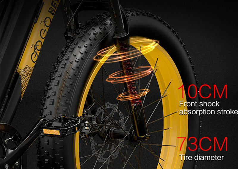 The Gogobest GF600 48V/13Ah 1000W Electric Moped Bike is a high-performance e-bike designed for urban commuting and off-road adventures. With its powerful 1000W motor and long-lasting 48V 13Ah lithium-ion battery, this e-bike delivers impressive speed and endurance. With a top speed of 40km/h and mileage of approximately 110km, it offers an exhilarating and long-lasting ride. The 26-inch 4.0 fat tires provide excellent traction and stability on various terrains, while the front and rear disc brakes ensure reliable stopping power. Experience the thrill and convenience of the Gogobest GF600 Electric Moped Bike for your everyday commuting or outdoor exploration.